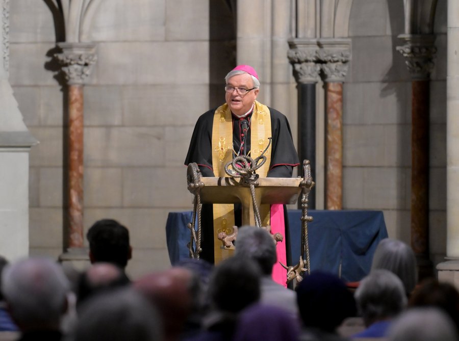 Bischof Wiesemann appellierte an die Gläubigen, sich der Vergangenheit zu stellen, sich „immer wieder erinnern an das himmelschreiende Unrecht der NS-Machthaber, an das gleichgültige Wegsehen und Schweigen weiter Teile der Bevölkerung“. Es sei wichtig, „ehrlich in die Vergangenheit [zu] blicken“, sie nicht abzuschütteln.