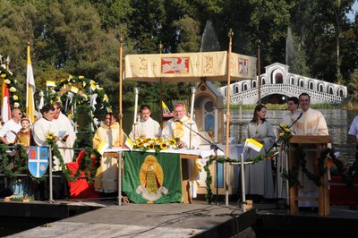 Bobenheim-Roxheim (03.08.2015). Die „Pfälzische Wasserprozession“ auf dem Bobenheim-Roxheimer Altrhein bei Worms ist einmalig in Rheinland-Pfalz.Seit der Premiere im Jahr 2008 – hat dieses außergewöhnliche Event – Tausende von Menschen aus ganz Europa, in die Roxheimer Altrheinanlage gelockt. Dieses Jahr gehen die Bobenheim-Roxheimer Katholiken am Samstag, 5.September, auf`s Wasser.