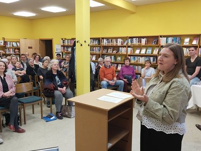 Katharina Binz (Bündnis 90/Die Grünen), Ministerin für Familie, Frauen, Kultur und Integration des Landes Rheinland-Pfalz eröffnete die Bibliotheksnacht mit einem zentralen Auftakt in der Bücherei St. Joseph in Speyer. © Der Pilger/Hubert Mathes