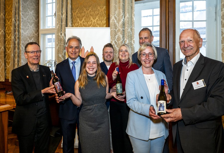 Ein Cabernet Sauvignon vom Weingut Werner Anselmann aus Edesheim und ein Weißburgunder vom Winzerverein Deidesheim sind die neue Domwein-Edition 2025, die der Dombauverein vor rund 100 Gästen gemeinsam mit den beiden Weingütern und den pfälzischen Weinhoheiten mit der Weinkönigin Denise Stripf vorstellte. Erstmals in der Geschichte der Domweine kommt ein dritter Wein hinzu: ein alkoholfreies Cuvee aus Riesling und Gewürztraminer mit dem Namen „Domschatz“. 6 400 Euro spendete das Weingut Werner Anselmann aus dem Erlös des Weinverkaufs in den letzten 12 Monaten an den Dombauverein, 6 200 Euro kamen vom Winzerverein Deidesheim.