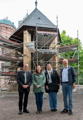 Freuen sich über den Fortschritt der Maßnahmen am Ölberg neben dem Speyerer Dom: (v.l.n.r.): Domdekan und Domkustos Dr. Christoph Kohl, Dombaumeisterin Hedwig Drabik, Architektin Marta Schiedermaier, Vorstandsvorsitzender des Dombauvereins Prof. Dr. Gottfried Jung