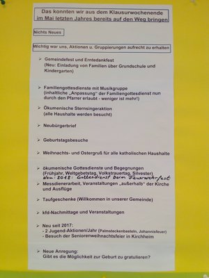 Außerdem wurde in den Blick genommen, was aus dem Klausurnachmittag im Mai letzten Jahres bereits auf den Weg gebracht werden konnte.