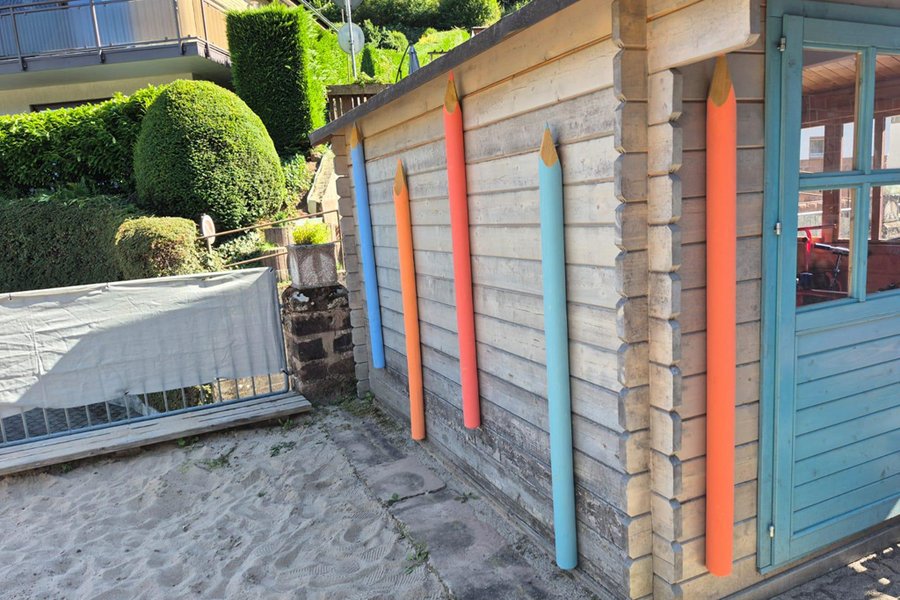 Im Anschluss wurden noch sehr dekorative und aus Holz gefertigte Buntstifte an verschiedenen Stellen angebracht.