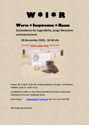 Dienstag, 04.November 2025, 19:00 h im Pfarrheim St. Joseph in Rheingönheim