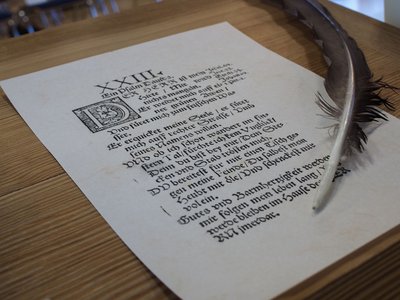 Über Jahrhunderte dauerte der Entstehungsweg der heiligen Schrift. In Lingenfeld wird dieser Weg wie im Zeitraffer erlebbar. In acht Stationen soll gezeigt werden, wie die Bibel geworden ist: vom mündlichen Erzählen über die klösterliche Schreibstube des Mittelalters hin zu Luthers Burgkammer auf der Wartburg, wo er die erste deutsche Bibelübersetzung schuf. „Das soll für alle Sinne erlebbar gemacht werden“, so Pfarrer Oesterling. Ob das nun das Nomadenzelt ist, in dem sich Gäste eine Jesus-Geschichte erzählen lassen können oder die Druckerwerkstatt Johannes Gutenbergs, der eben die ersten Seiten einer Bibel druckt – all das soll in einer Art großer Installation ins Pfarrheim integriert werden. Die Stationen sollen in Bild, Ton, Kulisse und Schauspiel so gestaltet werden, dass sich der Betrachter in einer Art Zeitreise mitgenommen fühlt in die Welt der Bibel.