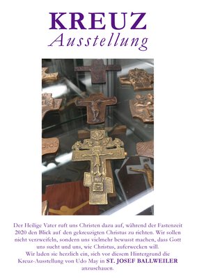 In der Fastenzeit gibt es wieder vielfältige spirituelle Angebote: Taizé-Gebete, Friedensgebete, Fastenandachten, Kreuzwege, Marien-Samstage, Rosenkranzgebete, Bibelgespräche, oder das Exerzitienangebot „33 Tage mit Maria“ (Treffen immer freitags, 19 Uhr im Pfarrhaus Biesingen).