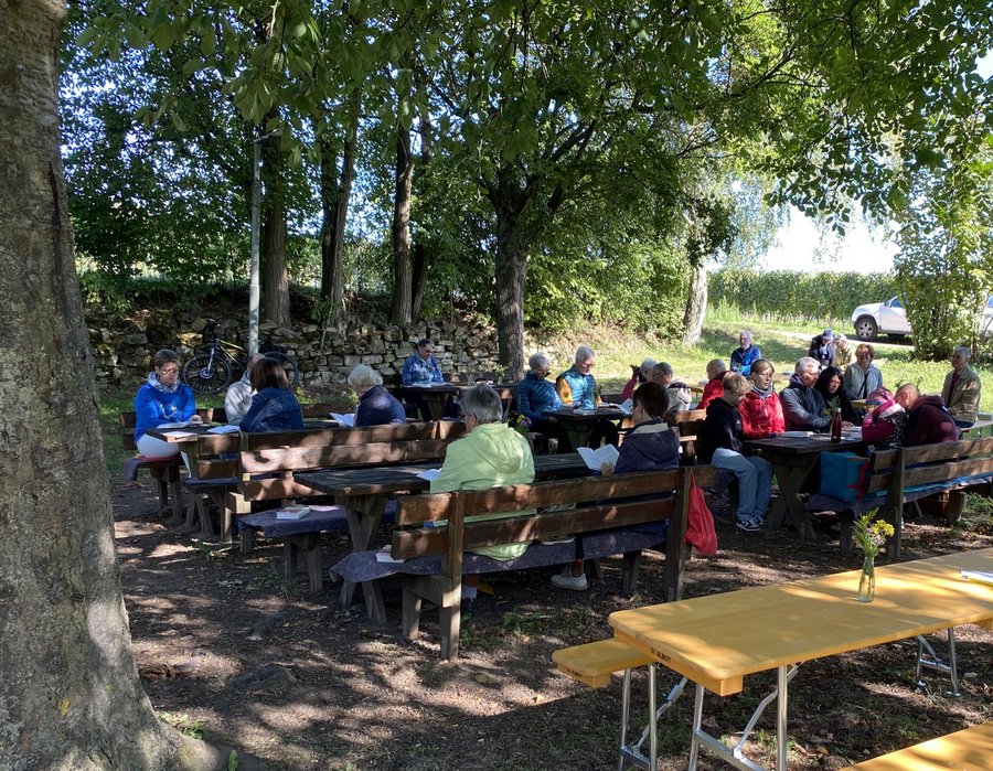 Unfassbar - wie großzügig der Weinbergsbesitzer doch ist! Unfassbar wie schön es doch ist in freier Natur Gottesdienst zu feiern! Unfassbar - dass die Sonne diesen Tag wirklich zu einem Sonntag gemacht hat! Herzlichen Dank an alle, die diesen Tag möglich gemacht haben: Danke an den GA Mörzheim/Wollmesheim für die guten Ideen und das Mitgestalten von Gottesdienst und Stationenweg - es war wie immer toll und eine runde Sache! Danke an den Projektchor mit Menschen aus der näherern aber auch ferneren Umgebung von Landau! Danke an die Kultuskapelle, die uns den Gottesdienst, aber auch das Picknick musikalisch verschönt haben. Danke an alle, die mit uns gefeiert haben - es war einfach wieder schön. Einen Wunsch für die Zukunft hätten wir: Komm Du - Kommen Sie doch auch mal dazu - es lohnt sich wirklich! Bis in 2024!