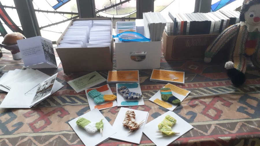 Mit wunderschön gestalteten Plakaten warb der Caritaskreis St. Sebastian für den Basar, bei dem sie Spenden für das „Winterhilfe-Mittagessen“ sammelten. Im Vorfeld wurden kleine Söckchen für schöne Karten gestrickt und Buttons mit fleißigen Bienen gestaltet und hergestellt, ganz nach dem Motto des Basars: „Wir schwärmen für: Warme Mahlzeit trifft Herzenswärme“, mit Anspielung auf das Winterhilfe-Mittagessen.