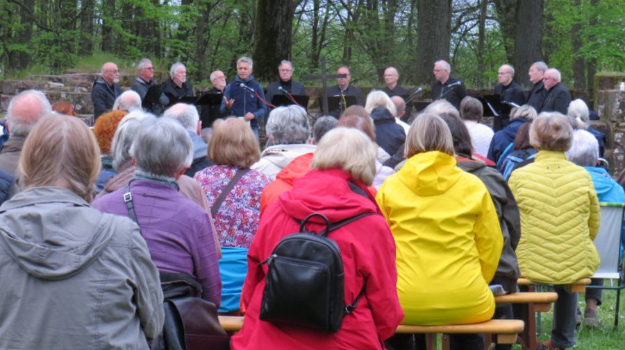 Trotz der unsicheren Wettervorhersagen – Petrus hatte die Gebete der ProtagonistInnen erhört – haben viele Gläubige den Weg auf den Klosterberg gefunden und waren begeistert. „Es war so klasse“, so die Reaktion einer Besucherin. Auch die Veranstaltungen vor dem eigentlichen Abendlob, Wanderung, Achtsamkeitsübung und eine Führung über das Klostergelände, konnten genauso überzeugen wie die Verköstigung durch den Förderverein der Klosterruine Wörschweiler.