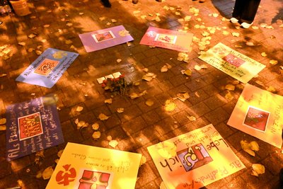 Begonnen haben wir das Gedenken mit dem Lied „Andre, die das Land so sehr nicht liebten.“ Danach wurde die Familiengeschichte der Mayers von Gruppenleiterin Jana Jutzi vorgelesen. Aufmerksam hörten wir im Anschluss die von Stefan Deobald vorgetragenen Worte des Sch'ma Jisrael. Die Pfadfinder legten um die neu verlegten Stolpersteine Plakate mit dem Pfadfindergesetz, das für uns sehr wichtig ist und für das wir einstehen, weil wir damit das gute Zusammenleben aller Menschen fördern wollen.