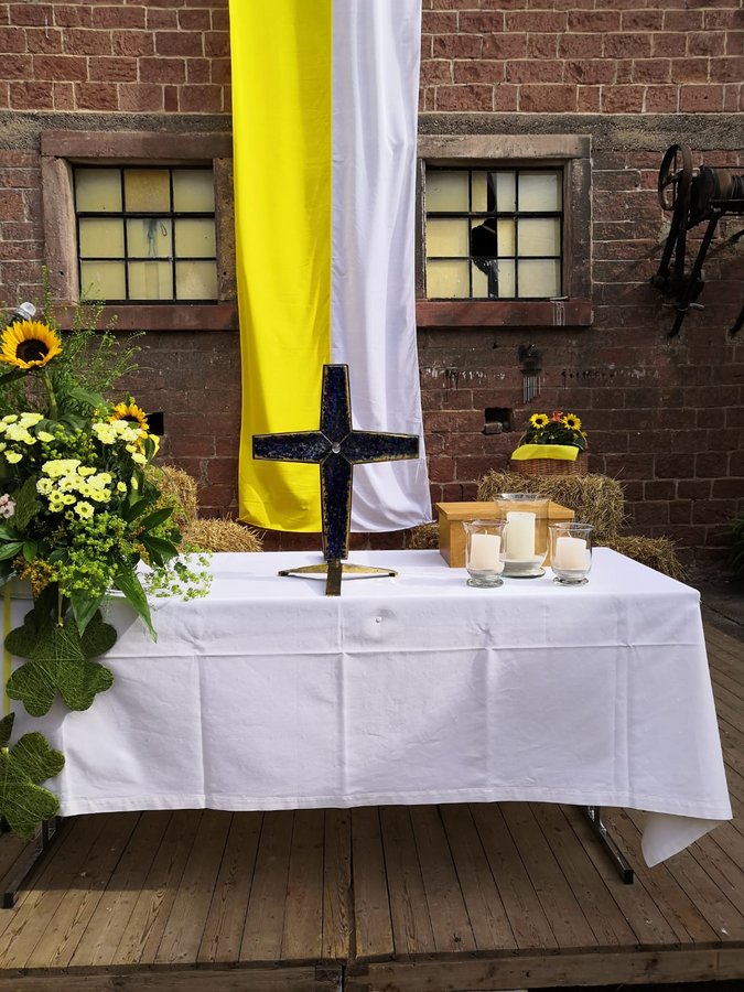 Herzlichen Dank allen, die geholfen haben aus dem Presbyterium der prot. Pfarrei und dem Gemeindeausschuss der kath. Pfarrei, dem Team des Bauernmarktes und selbstverständlich auch Familie Göbel, die uns den Hof zur Verfügung gestellt hat.