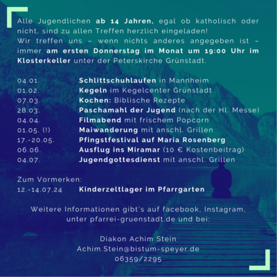 Herzliche Einladung an alle Jugendlichen ab 14 Jahren zum neuen monatlichen Jugendtreff!