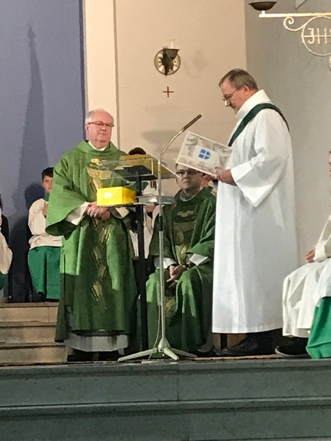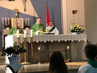 Am 9. Februar fand in der Kirche Herz Jesu in Oberwürzbach ein Abschiedsgottesdienst für Diakon Werner Lampel statt, der nach fast 33 Jahren im Dienst zum 1. März in den Ruhestand tritt. Als Vertretung unseres Bischofs Dr. Karlheinz Wiesemann kam Diakon Mathias Reitnauer aus Speyer, um ihm die Urkunde zu überreichen und ihm in der Predigt für seinen Dienst zu danken. Ein besonderer Dank ging auch an die Ehefrau, Sonja Lampel, die ihren Mann immer unterstützt hat. Am Ende des Gottesdienstes bedankte sich auch Pfarrer Brylka für die gute Zusammenarbeit. Eine Schaar von Messdienerinnen und Messdienern aus allen drei Gemeinden, Rohrbach, Hassel und Oberwürzbach kamen und auch der Kirchenchor Oberwürzbach umrahmte diesen Gottesdienst.