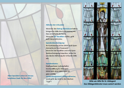 · Spenden gehen zweckgebunden an das Konto der Kirchenstiftung St. Hildegard bei der Sparkasse Vorderpfalz