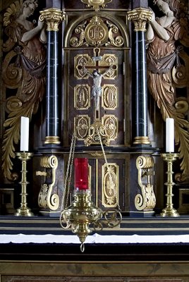 Detail des Hochaltars mit Ewigem Licht im Vordergrund (Foto: Benninghoff)