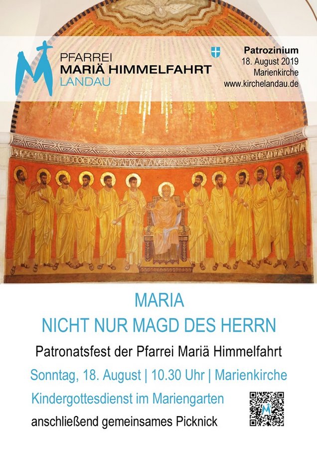 Am Sonntag, 18. August, feiert die Pfarrei Mariä Himmelfahrt Landau ihr Patrozinium. Patronin der katholischen Kirchengemeinde ist die in den Himmel aufgenommene Gottesmutter Maria. Zur Pfarrei gehören die Gemeinden St. Maria und St. Albert in Landau, St. Ägidius in Mörzheim, St. Mauritius in Wollmesheim, Mariä Himmelfahrt in Queichheim und St. Martin in Mörlheim.