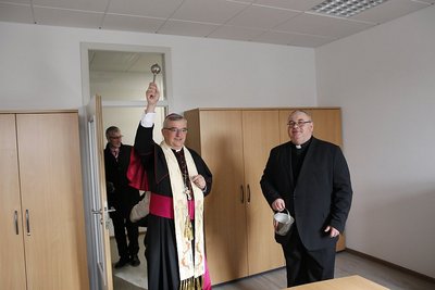 Bischof Karl-Heinz Wiesemann und Pfarrer Jörg Rubeck gingen durch das Kloster und segneten alle Räume.