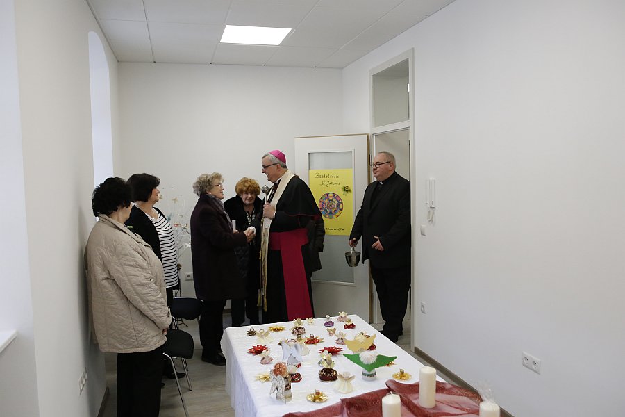 Wie die vielen Besucherinnen und Besucher, die den ganzen Sonntag über die Räumlichkeiten des Kloster besichtigten, gingen auch Bischof Karl-Heinz Wiesemann und Pfarrer Jörg Rubeck von Raum zu Raum, um das Gebäude zu segnen. Im Gebäude sind nun neben der Regionalverwaltung Germersheim/Landau die Pfarreiverwaltung, das Pastoralteam, verschiedene Gemeindegruppen als auch die Katholische Hochschulgemeinde (KHG) angesiedelt. Die KHG wird ihren Raum in ökumenischer Initiative zusammen mit der evangelischen Studentengemeinde nutzen.