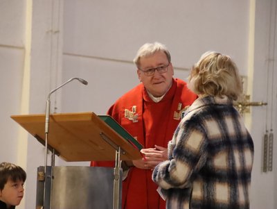 Pfr. Alban Meißner betonte bei der Eröffnung des Gottesdienstes, dass das Patrozinium mit etwas Besonderem verbunden ist. In der Eucharistiefeier sagen wir Dank und er bedankte sich an dieser Stelle bereits bei allen an der Entstehung des Kirchenführers beteiligten Personen: Allen voran Dr. Joachim Glatz, der selbst aus Mundenheim stammt, und den Kirchenführer verfasst hat. Diakon Eugen Ennemoser, der als Zeitzeuge wertvolle Hinweise gegeben hat sowie bei Gabi Birkle, die für die Zusammenstellung der zahlreichen Bilder gesorgt hat und für das Layout verantwortlich war. Aber auch allen Personen, die im Hintergrund tätig ware, wurde gedankt: Hildegard und Wolfgang Wilbert, Hans Birkle, Martin Birkle, Jens Klaus und Patrizia Magin.