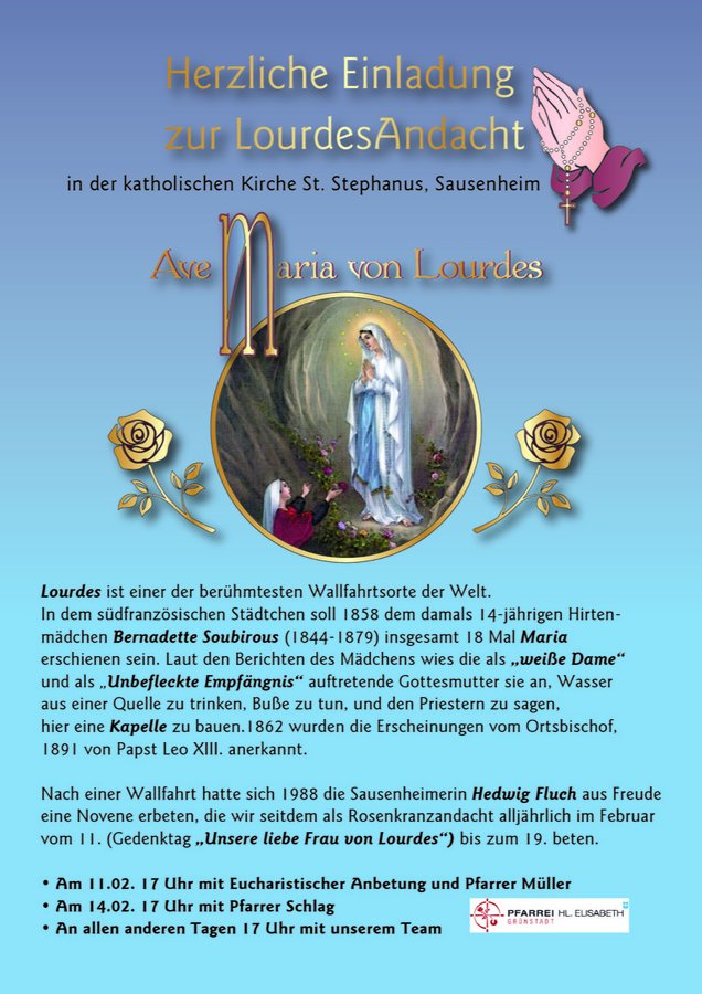 am 11.02., 17 Uhr mit Eucharistischer Anbetung und Pfr. Müller