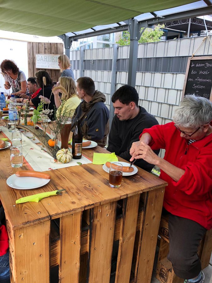 Am Samstag, den 15. September 2018 durften wir auf zwei 7-Sitzer-Draisinen von Bornheim nach Westheim und zurück fahren. Die Fahrt machte uns großen Spaß. Der Familie Bauer sind wir dankbar, dass sie uns einen so schönen Tag auf Schienen ermöglicht haben. Als wir in Westheim ankamen, wurden wir noch mit Pommes, Wurst und Getränken verwöhnt. Tausend Dank an Familie Bauer für das Verwöhnen unserer Gaumen. Es fand sich sogar noch ein Spender für eine Tasse heiße Schokolade und eine Kugel Eis. Unseren Spendern ein herzliches Dankeschön. Vergelt's Gott.