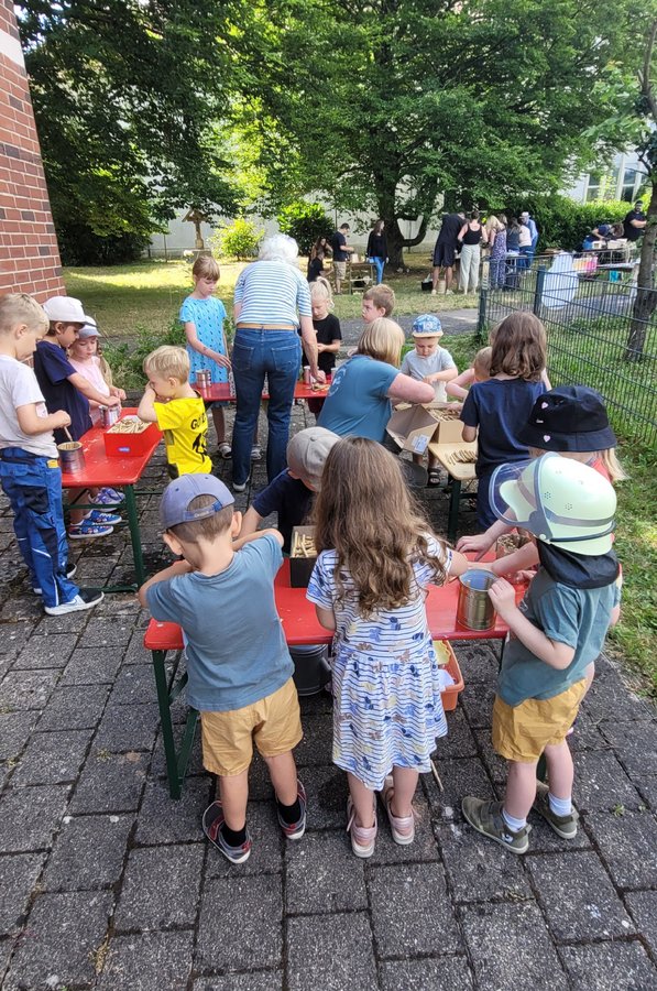 Auch die Eltern werden aktiv einbezogen. So fand am Samstag, den 12. Juli 2025, ein besonderer Workshop in der Kita statt: Gemeinsam mit ihren Kindern bauten die Familien Wildbienenhäuser, die sie anschließend mit nach Hause nehmen durften. Ergänzend gab es hilfreiche Informationen darüber, wie man Wildbienen im eigenen Garten oder auf dem Balkon anlocken und unterstützen kann.