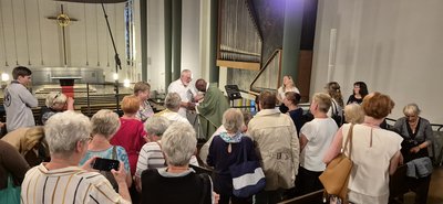Christoph Angeli leitet neben dem Kirchenchor St. Sebastian in LU-Mundenheim auch seit einigen Jahren den Kirchenchor St. Martin in Waldsee. Am 6. Juli 2024 begeisterten beide Kirchenchöre gemeinsam die Gottesdienstbesucher*innen der Vorabendmesse in St. Sebastian mit neuen geistlichen Liedern. Der frische Wind von der Empore machte auch bei den Gottesdienstbesucher*innen nicht halt und es würde bei vielen Liedern kräftig mitgeklatscht - und auch mitgesungen, da das eine oder andere Lied im Gotteslob enthalten ist.