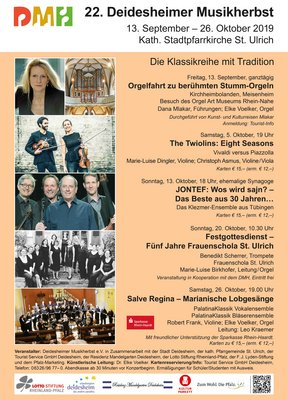Sie finden hier das diesjährige Programm des "Deidesheimer Musikherbstes" vom 13. September bis 26. Oktober 2019