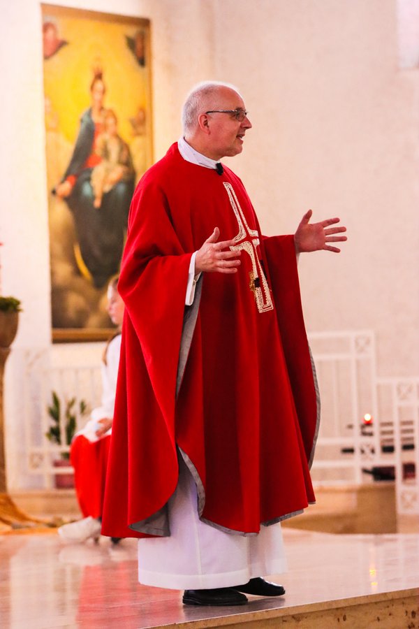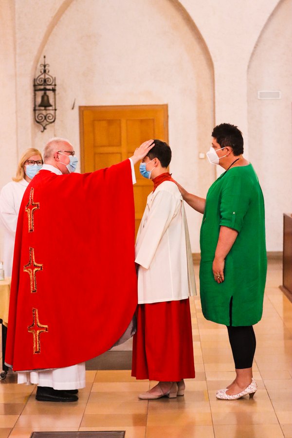 Bei blauem Himmel und Sonnenschein empfingen am Freitag, 2 Juli und Samstag, 3. Juli 47 Jugendliche endlich das Sakrament der Firmung. Die Firmlinge hätten bereits im Juni 2020 gefirmt werden sollen, doch wegen Corona kam alles anders. Nach über einem Jahr des Wartens und der gemeinsamen Vorbereitung durch interaktive Gottesdienste, das Sakrament der Versöhnung, Online-Treffen und einiges mehr, kam in Vertretung von Bischof Dr. Karl-Heinz Wiesemann der Spiritual des Speyerer Priesterseminars Pfr. Martin Seither zu uns nach Zweibrücken, um in drei Gottesdiensten den Jugendlichen das Sakrament der Firmung zu spenden. In seiner Predigt veranschaulichte Pfr. Seither den Firmlingen, was das Sakrament der Firmung bewirkt. Anschließend legte er den Firmlingen die Hand auf und zeichnet mit dem Chrisam ein Kreuz auf deren Stirn und sprach: "Sei besiegelt durch die Gabe Gottes, den Heiligen Geist."