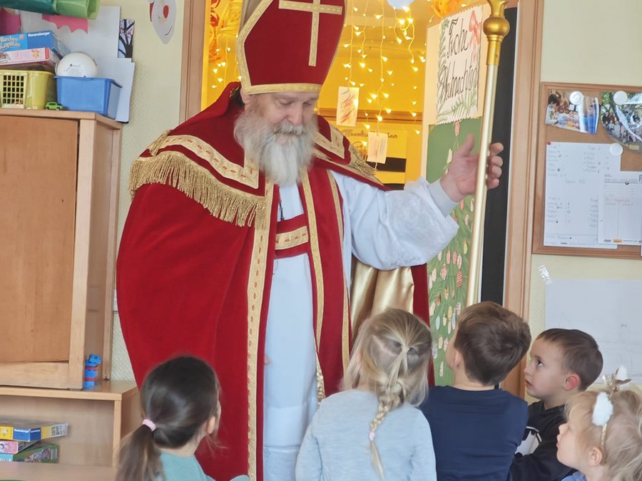 In der Kita St. Cyriakus in Lindenberg wurde es heute ganz besonders festlich: Der Nikolaus hat uns besucht! Schon am frühen Morgen lagen Aufregung und Vorfreude in der Luft. Im ganzen Haus hörte man fröhliches Singen, leises Kichern und das heimliche Üben kleiner Gedichte – schließlich wollte jedes Kind den besonderen Gast gebührend begrüßen.