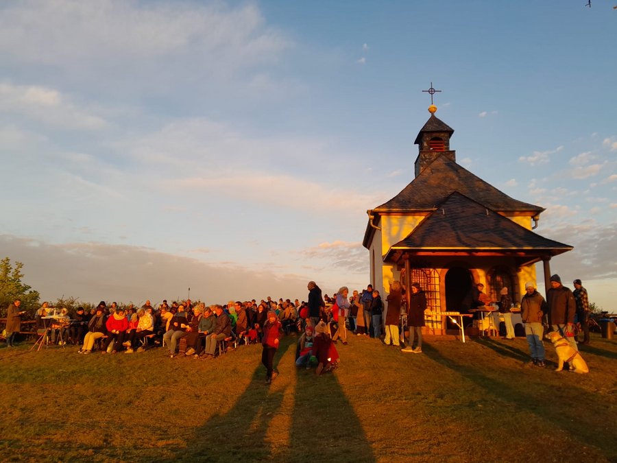 Morgens um 6 ist die Welt noch in Ordnung! So ist es! Etwa 130 Menschen aller Altersklassen fanden sich zu der etwas anderen Auferstehungsfeier an der Kapelle der Kleinen Kalmit ein. Zum ersten Mal feierte unsere Pfarrei dort Ostern und es war sicher nicht das letzte Mal.