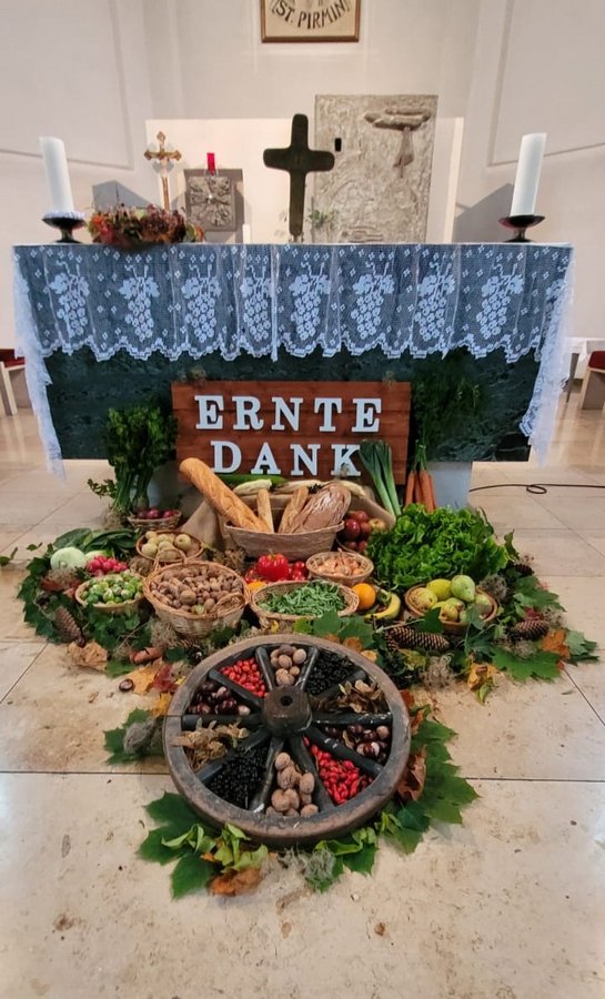 Traditionell wird in Walsheim das Erntedankfest gemeinsam mit dem Kirchweihfest begangen. Am vergangenen Wochenende war es soweit. Karolin Kossack und Tanja Petto mit ihrer Familie gestalteten das schöne Altarbild in Walsheim.