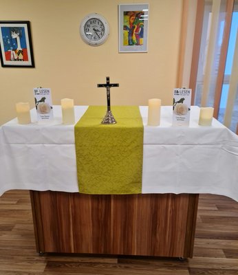 Mit diesen Worten aus dem Evangelium vom kommenden Wochenende gab es auch eine schöne Überleitung im Gottesdienst im Haus Maximilian, schon im Gedenken an unsere Pfarrpatronin Hl. Elisabeth. Auch sie gab alles für Arme und Kranke. So passte die Evangelienstelle und die Gedanken zur Hl. Elisabeth ebenfalls für die Bewohner im Haus, denn auch dort geben viele alles auf, kommen in eine neue Umgebung und werden hier von fürsorglichen Pflegekräften umsorgt. So können die Wortgottesfeiern, die regelmäßige Krankenkommunion und auch der heutige Gottesdienst mit Hr. Pfarrer Müller Trost und Stärkung schenken. Mit einem Flyer "Lass Rosen sprechen", den alle Bewohner überreicht bekamen und ein paar Gedanken von Bianka Wüst zu dem schönen Flyer wurde so der Hl. Elisabeth gedacht. Die Fürbitten und der Psalm wurden von Gudrun Manes vorgetragen und Herr Seppl Lang, der uns an der Orgel begleitete, rundete den Gottesdienst im Haus Maximilian ab.