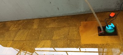 Das Wasser stand im Treppenabgang und lief unter der Tür durch in den Flur, die Toiletten und die frühere Küche/jetzt Abstellraum und musste erstmal rausgepumpt werden. Die Situation hatte sich bis zum Redaktionsschluss noch nicht entspannt, d. h. es muss immer noch das eindringende Wasser im 2 – 3-Stunden-Rhythmus abgesaugt und abgepumpt werden, auch nachts, da das Wasser sonst unaufhörlich ansteigt.