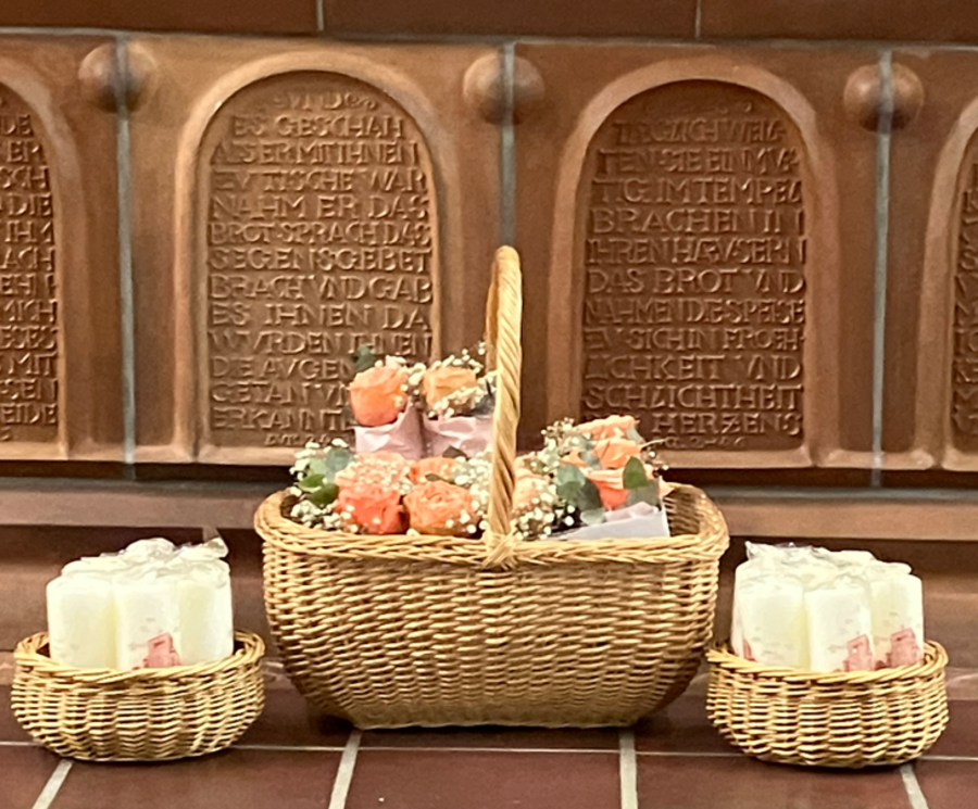 Rosen sind - verweisend auf die Legende der Hl. Elisabeth von Thüringen - Symbol für die Nächstenliebe. Daher erhielten nach der Predigt alle anwesenden Mitglieder als Zeichen der Dankbarkeit eine Rose und eine Kerze mit dem Logo der Kirche Herz Jesu. Auch wenn beide Symbole vergänglich sind (Rosen verwelken und Kerzen werden abgebrannt), sind diese Symbol der Dankbarkeit und Ausdruck des Gebetes. Die Mitglieder, die nicht da sein konnten, erhalten ihre Geschenke in den nächsten Tagen. In den Fürbitten wurde auch der 37 Personen gedacht, die bereits verstorben sind und für jede der Personen wurde eine Kerze entzündet. Am Ende des Gottesdienstes bedankte sich der Vorsitzende des Gemeindeausschusses Herz Jesu und zugleich Vorsitzender des Pfarreirates, Jörg Neubauer, für die viele Jahrzehnte lang geleistete Arbeit. Er betonte vor allem, dass bei der gesamten Arbeit des Caritas-Kreises nie der Eindruck entstand, die Arbeit würde aus Lust nach Anerkennung verrichtet - ganz im Gegenteil: Dank war nahezu immer unerwünscht! Die Mitglieder wollten einfach etwas Gutes tun und erwarteten dafür keine Dankesworte. Engagement verändert sich, das ist daran zu sehen, dass es keinen eigenen Caritas-Kreis in Herz Jesu mehr gibt. Aber es gibt weiterhin die Möglichkeit, sich caritativ zu engagieren - dies betonte auch Pfr. Alban Meißner und verwies auf Gemeindereferentin Simone Hartner, die den Ausschuss Caritas auf Pfarreiebene koordiniert.