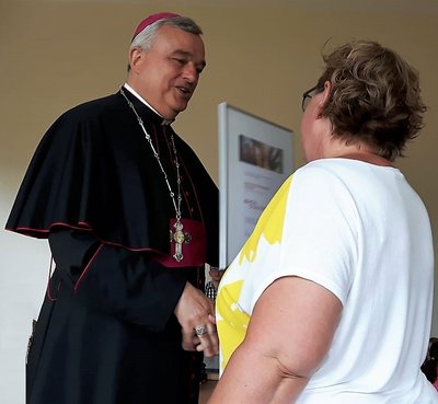 Im Lina Sommer Heim wurde der Bischof von den Bewohnern des AWO Hauses herzlich empfangen. Mit Liedern, einem gemeinsamen Gebet und dem Segen durch den Bischof endete der Besuch.
