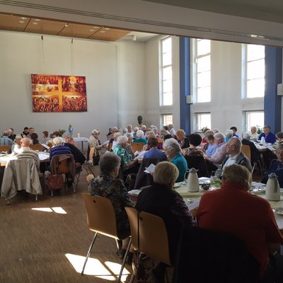 Die Maiandacht der Senioren am 2.5.2016 im Pfarrzentrum Kardinal-Wendel-Saal Blieskastel war die zweite erfolgreiche, gemeinschaftliche Veranstaltung der neuen Pfarrei Hl.Franz von Assisi. Pater Jozef und Frau Edith Rau gestalteten gemeinsam die Andacht zu der fast 100 Senioren aus den fünf Gemeinden der Einladung gefolgt waren .Im Anschluss fand ein gemütliches Beisammensein bei Kaffee und Kuchen statt , organisiert vom Caritasteam Blieskastel unter der Mithilfe einiger Frauen und Firmlinge aus der Pfarrei.Viel Freude bereitete den Teilnehmern auch das Singen von alten Volksliedern.