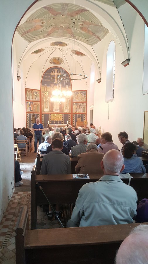 In der Nikolauskapelle begannen wir mit dem Festgottesdienst. Ursprünglich von 44 Personen maximal ausgegangen, war die kleine Kapelle nun überfüllt.