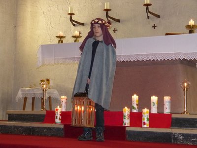 Mit dem Hirten Simon und zahlreichen Gottesdienstbesucher(innen) machten sich beim Familiengottesdienst am Ersten Advent in Germersheim viele Familien auf den Weg durch den Advent.