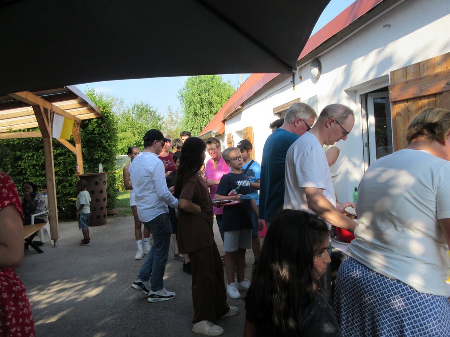 Trotz der großen Hitze waren viele gekommen: mit allen Helfer*innen - sei es aus dem Leitungsteam, der Küchenbesetzung oder der Musikgruppe und den Ministrant*innen selbst waren wir knapp 60 Personen.