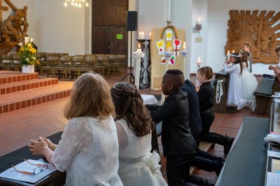 Die Gottesdienste wurden in Herz Jesu und St. Ludwig von der Band Herz Jesu musikalisch mitgestaltet; in St. Sebastian vom Singkreis Hll. Petrus und Paulus. Feierliche Orgelmusik erklang in Herz Jesu und St. Sebastian von Achim Böhme; in St. Ludwig von Heinz-Georg Saalmüller. Am Ende der Gottesdienste wurde in erster Linie den jeweiligen Kommunionkatechetinnen gedankt, aber auch allen, die zum Gelingen der Gottesdienste beigetragen haben.