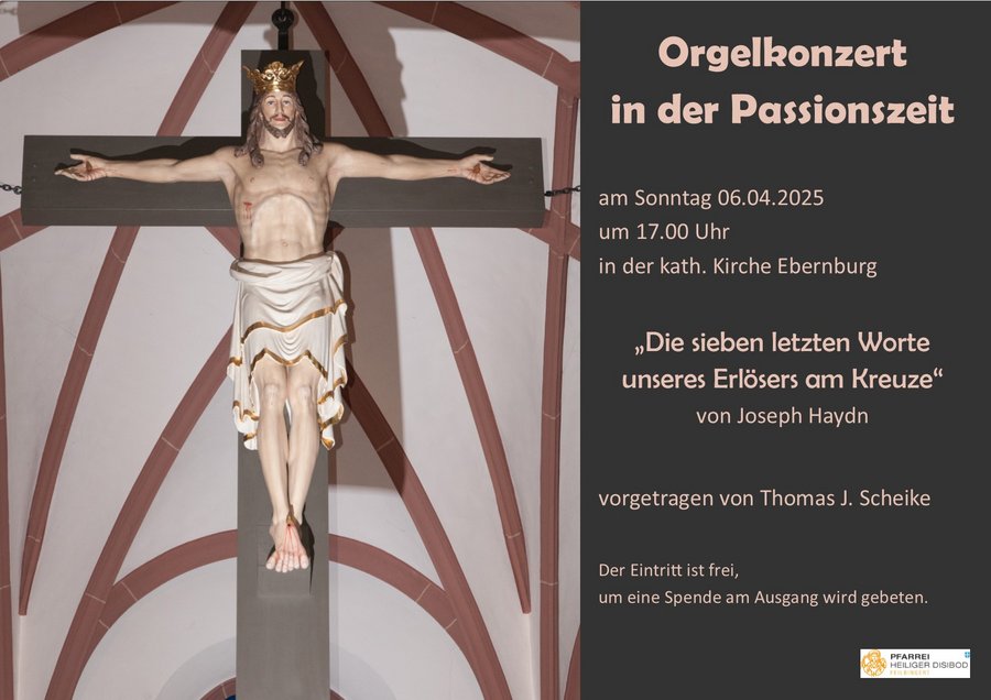 Thomas J. Scheike wird Joseph Haydns Werk " Die sieben letzten Worte unseres Erlösers am Kreuze" vortragen. Das Werk, ursprünglich 1787 für großes Orchester als Auftragsarbeit für die Kathedrale im spanischen Cadiz komponiert, stellt eine musikalische Meditation über Jesu letzte Worte am Kreuz dar. Nach jedem Wort folgt ein Instrumentalsatz.