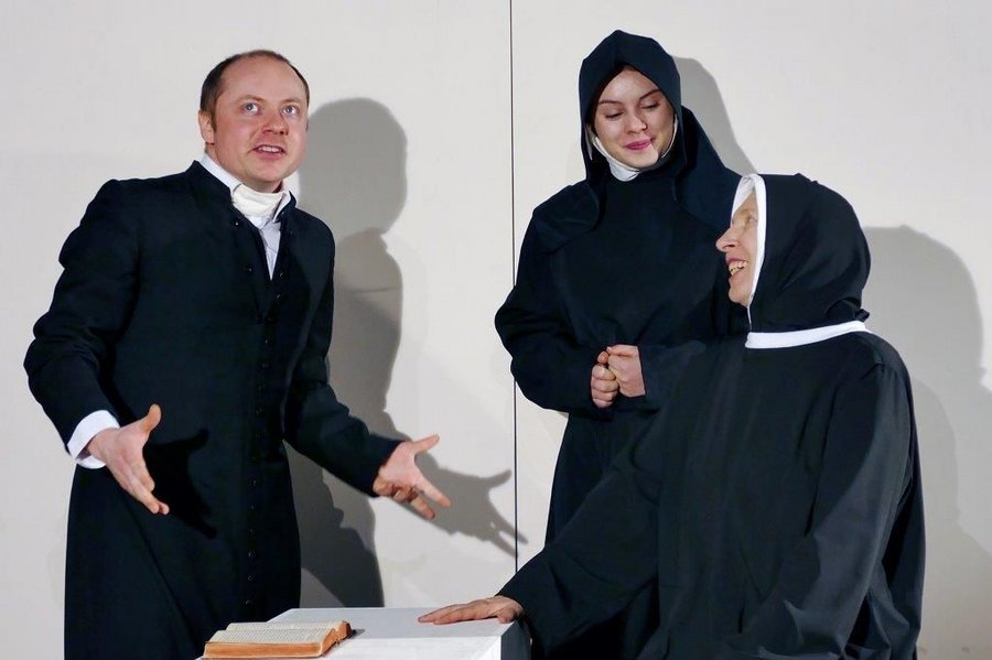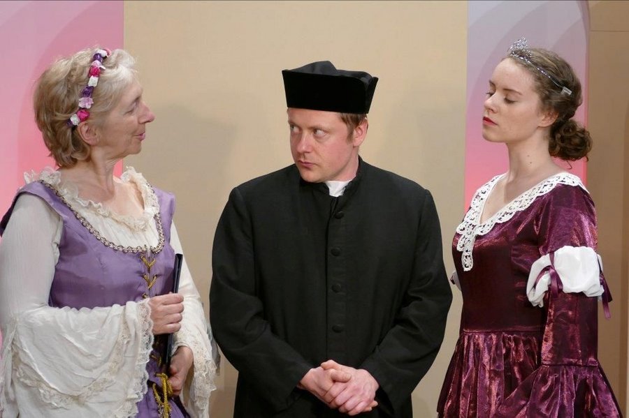 Auf der Bühne ging es jedoch nicht nur um Kirchengeschichte. Die fünf Schauspieler(innen) gaben einen Einblick in die Gesellschaft des 19. Jahrhunderts. Der Humor kam im Stück nicht zu kurz, etwa als der Bischof der skandalumwitterten Geliebten des bayerischen Königs begegnet. Von besonderem Interesse war auch die turbulente Entstehungsgeschichte der "Mallersdorfer Schwestern", die später auch über viele Jahrzehnte segensreich in unserer Pfarrei wirkten.