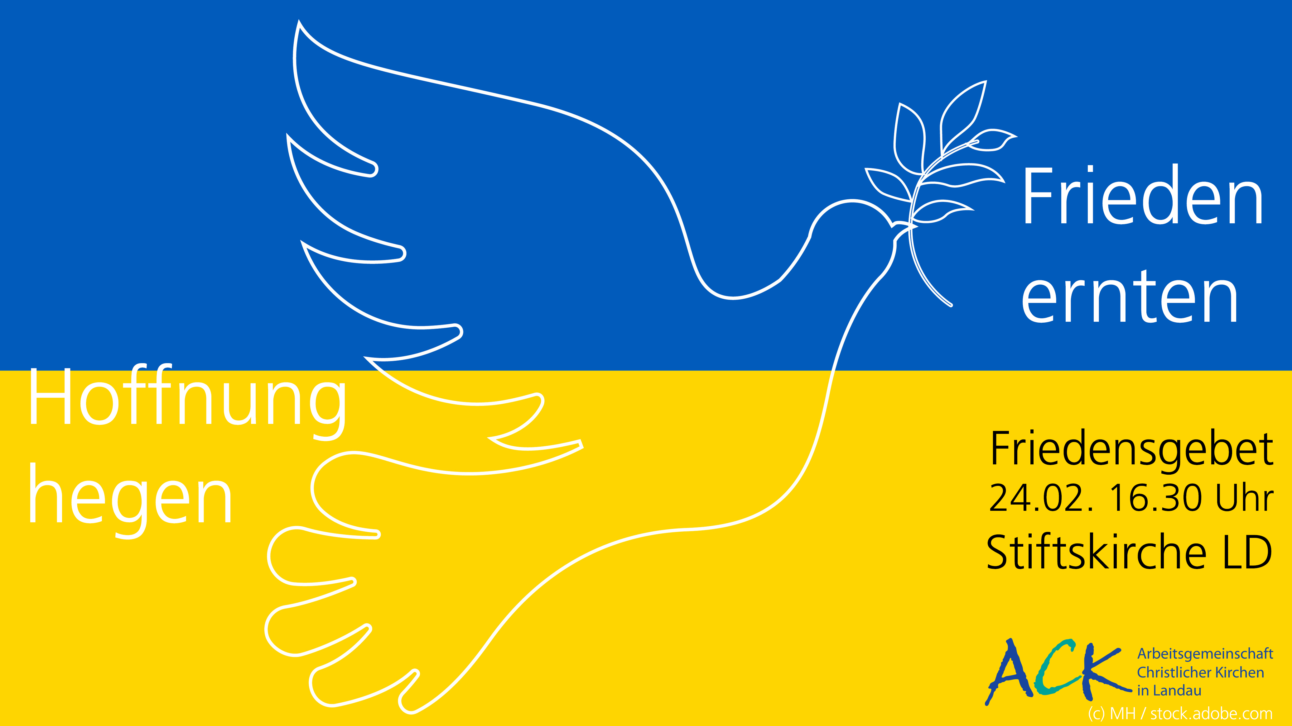 Am Ende des dritten Jahrestages des Kriegs, den Russland gegen die Ukraine führt, möchten die Christlichen Kirchen in Landau um den Frieden für die Ukraine, für Europa und für die Welt beten. Deshalb lädt die Arbeitsgemeinschaft Christlicher Kirchen alle Friedenswillige zu einem Ökumenischen Friedensgebet in die Katharinenkapelle (direkt neben dem Alten Kaufhaus und dem Frank-Loebsche-Haus) ein: