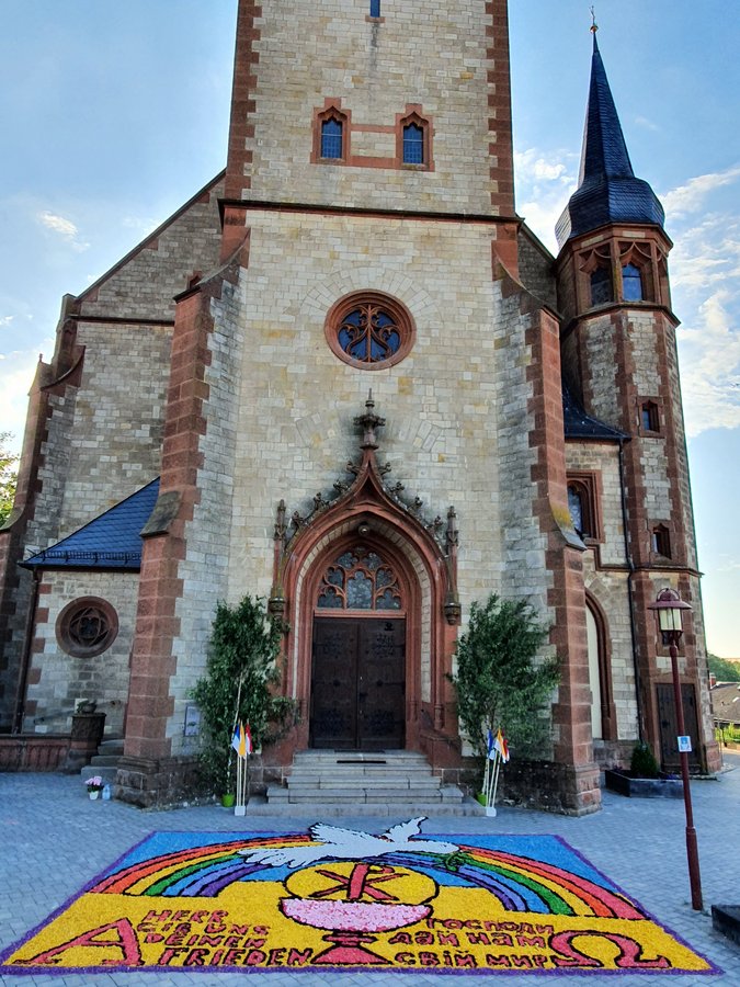 - Den fertigen Fronleichnamsteppich mit möglichst viel Kirchturm