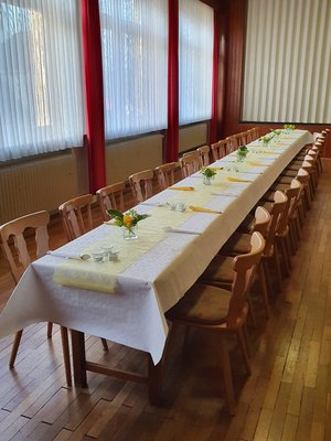- Eine unserer gedeckten Tafeln für das Mittagessen nach dem Festgottesdienst und der Prozession