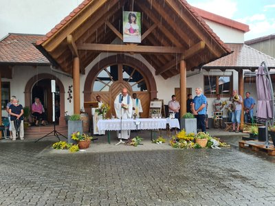 Trotz Regen fiel die Vorabendmess zu Maria-Himmelfahrt und die am Ende des Gottesdienstes vorgenommene Einweihung des Bildstocks in Niederkirchen nicht ins Wasser.