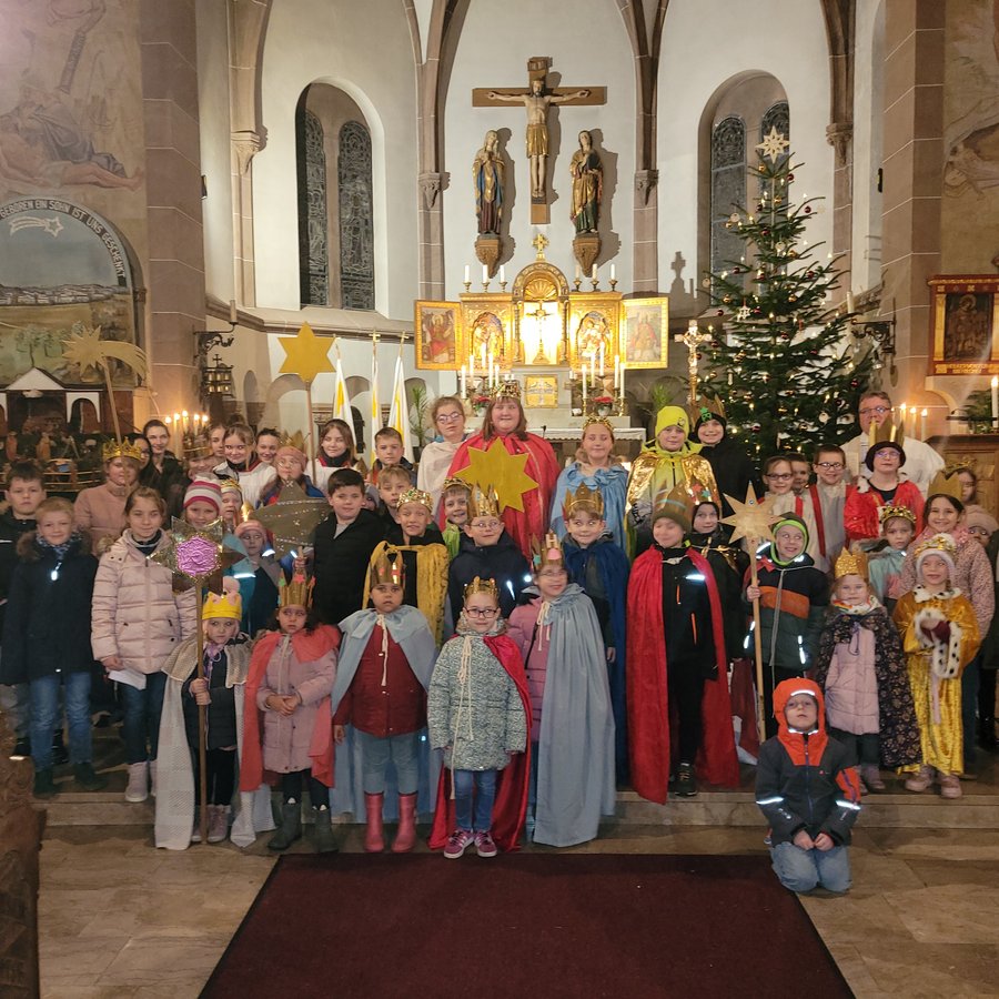 Auch in diesem Jahr waren wieder die Sternsinger in unserer Pfarrei unterwegs. Das Bild zeigt einen Teil der Sternsinger der Pfarrei bei der Aussendung in Martinshöhe. Insgesamt konnten die über 140 Kinder und 40 Erwachsenen, die auf unterschiedlichste Art mithalfen, wieder ein grandioses Ergebnis von über 17.000,00 € für die Projekte des Kindermissionswerkes sammeln. Die 35 Gruppen der Pfarrei waren hauptsächlich am 06. und 07. Januar in der Pfarrei unterwegs. Die Dankeschönaktion der Pfarrei, der Besuch der Eishalle eine Woche später, machte allen Kindern viel Freude.