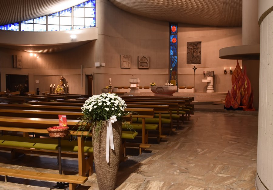 Nach drei Jahren wurde in der St. Barbara Kirche Herbitzheim, der größten Kirche der Pfarrei Hl. Kreuz Gersheim, wieder Firmung gefeiert. 70 junge Menschen ließen sich von der Einladung der Pfarrei ansprechen, meldeten sich zur Firmung an und bereiteten sich auf die Sakramentspendung vor. In zwei Gottesdiensten konnten die Jugendlichen mit ihren engsten Angehörigen das Fest begehen. Pfarreiratsvorsitzende Melanie Hesseler begrüßte die Jugendlichen, die im Mittelpunkt der Feier stehen sollten und sprach ihnen schon zu Beginn Mut zu. Sie freute sich mit dem gesamten Pastoralteam, dass Weihbischof Otto Georgens in diesem Jahr das Sakrament der Firmung spendete. Dieser fühlte sich sichtlich wohl in der Herbitzheimer Kirche und sprach die Jugendlichen in persönlichen Worten an. Die Predigt stieg mit Sophie Scholl, die am 9. Mai 2021 100 Jahre alt geworden wäre, ein. Sie habe mit ihrem kurzen Leben gezeigt, wie Christsein und Zivilcourage zusammengehören. „Ich will mich an das Seil klammern, das mir Gott in Jesus Christus zugeworfen hat“ – dieses Zitat von Sophie Scholl bezeugt ihren tiefen Glauben und sollte den Jugendlichen zeigen, dass auch in ausweglosen Situationen die Anbindung an Jesus Halt geben kann. Die Fürbitten, von Jugendlichen vorgetragen, waren inspiriert vom Symbol der Flammen, das kreativ umgesetzt von Margit Wesely, im Altarraum installiert war. Menschen, die für etwas brennen, brauchen den Geist Gottes zur Ermutigung und Stärkung. Darum baten die Jugendlichen stellvertretend für alle, die in Kirche, Politik und Gesellschaft Verantwortung tragen und sich für Schwache und Bedürftige einsetzen. Die Spendung des Firmsakraments folgte in großer Stille und Schlichtheit und war deshalb besonders eindrücklich. Die Gottesdienste wurden am Morgen vom Kirchenchor Reinheim und am Nachmittag vom Kirchenchor Rubenheim-Herbitzheim unter der Leitung von Jürgen Rabung festlich mitgestaltet. Auch am Ende der beeindruckenden Gottesdienste wandte sich Weihbischof Otto Georgens noch einmal an die Jugendlichen persönlich: „Ich bin gerne hierhergekommen und ich habe mich über unsere Gemeinschaft gefreut. Ihr seid ganz besondere Jungen und Mädchen.“ Dieser Zuspruch sollte weiterwirken, wenn die Jugendlichen ihren zukünftigen Weg selbstbewusst und gestärkt von Gottes Geist gehen.