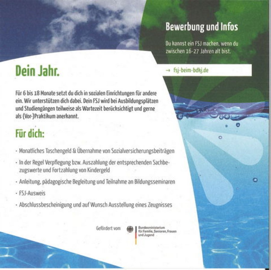 Bzgl. der Stellenausschreibung FSJ bitte an die FSJ Stelle wenden.